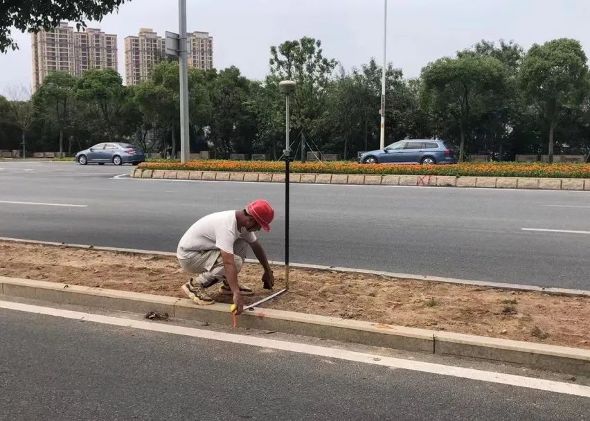 ▲工人们在对交叉路口路面进行丈量、切割事情